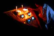 Along the route, shrines appeared with the gardens of stones. As I climbed and passed these shrines, an image came to my mind of partially burying light sources, such as video screens, under the pebbles and stones, so that the light from the CRT screens would pass through the stones, which in turn would act like optical filters or lenses.