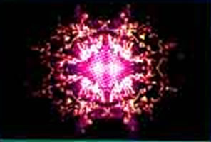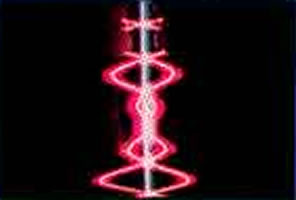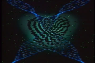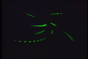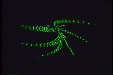 Illuminated Music 2, which is presented on a classic CRT analog video monitor in the “Visual Music: 1905-2005” exhibition at the Los Angeles Museum of Contemporary Art, and the Smithsonian Institute’s Hirshhorn Museum and Sculpture Garden in 2005, was originally recorded from a live performance on a large screen video projection given by video artist Stephen Beck and electronic sound composer Warner Jepson in 1973. The piece was also presented in the recent “Son & Lumiéres” exhibition at the Centre Georges Pompidou Museum in Paris, from September to December, 2004.
