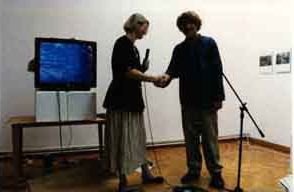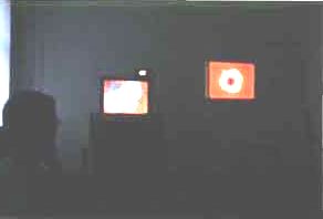 The work "Newspaper TV" presents video images and sounds from an amalgam of network TV news shows, including CBS, NBC, ABC, BBC, and NHK. Paper pages from The New York Times, Asahi Shinbum, The Times, and others were placed over the TVs to filter the video images to the viewers. The resulting images presented viewers the opportunity to see that their perception of what is "news" depended on the random way in which the TV news screen wasn't obscured by the paper news and simultaneously by the way in which the light from the TV news screen was able to illuminate the paper news -- a visual metaphor for the notion that our perception of reality is filtered by layers of reality, each one capable of either obscuring or illuminating the other.