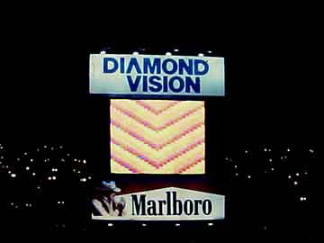 The year 1982 marked the appearance of giant video screens, based on gas discharge plasma bulbs. The Mitsubishi Diamond Vision screens were 30 feet wide, and when an executive from Mitsubishi noticed a chevron-shaped diamond passage in Beck's Video Weavings at the Tokyo Museum of Art's "Video Tokyo" exhibition, his firm licensed the artist's work for a full season's display on the first Mitsubishi Diamond Vision screen at Shea Stadium in New York for the New York Mets.